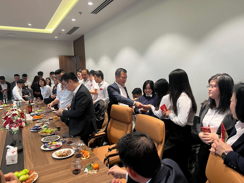 Trong buổi gặp mặt đầu năm, đại diện Ban Lãnh đạo Totalco đã gửi lời chúc mừng năm mới đến toàn thể cán bộ nhân viên, đồng thời chia sẻ những định hướng trọng tâm và mục tiêu chiến lược trong năm. Những thông điệp về tinh thần đoàn kết, trách nhiệm và bản lĩnh được nhấn mạnh như kim chỉ nam cho hành trình phía trước. Khoảnh khắc nâng ly chúc mừng đầu xuân không chỉ là nét đẹp truyền thống mà còn thể hiện sự đồng lòng và niềm tin mạnh mẽ vào một năm mới nhiều thành công. Phần lì xì đầu năm – hoạt động được mong chờ – đã mang đến niềm vui rạng rỡ cho toàn thể nhân viên. Những phong bao đỏ không chỉ tượng trưng cho tài lộc và may mắn, mà còn thể hiện sự quan tâm, ghi nhận và động viên kịp thời từ Ban Lãnh đạo đối với từng thành viên trong đại gia đình Totalco.