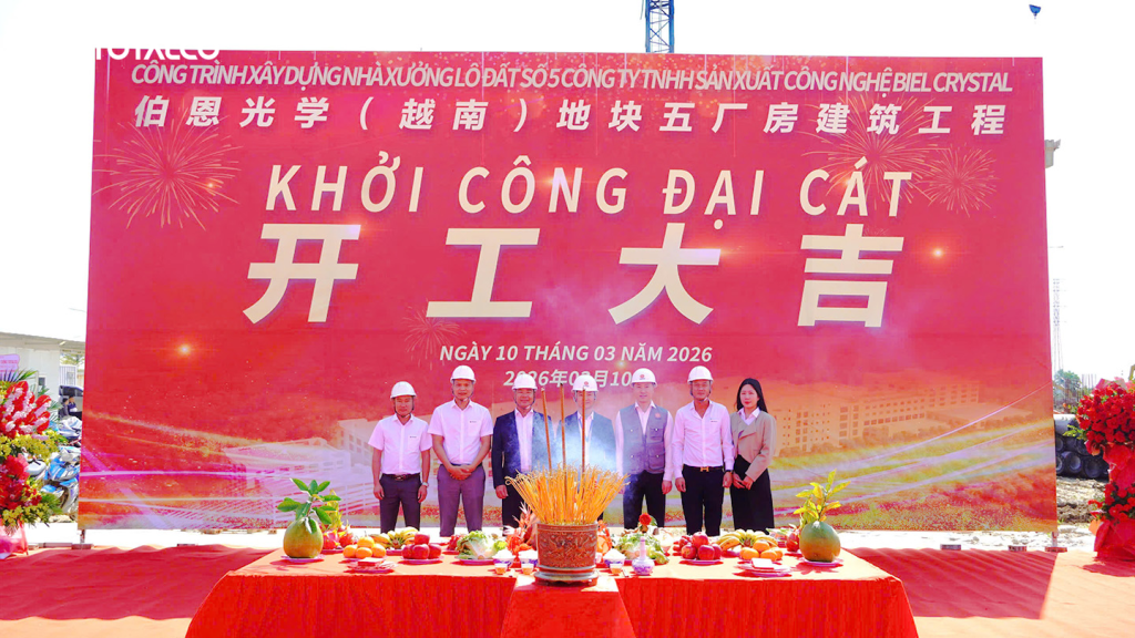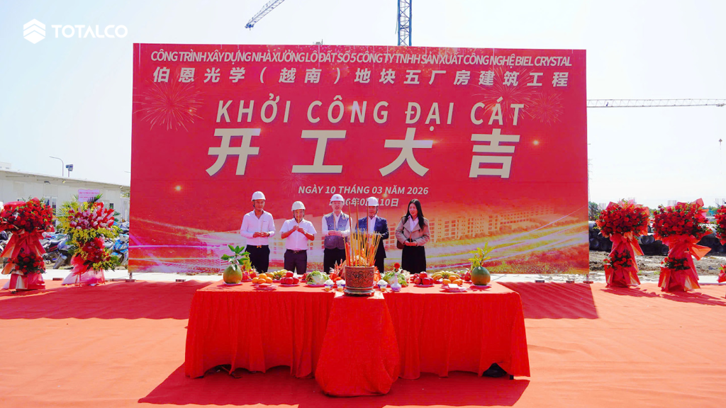 Sáng ngày 10/03/2026, đại diện Công ty Cổ phần Xây dựng Totalco đã tham dự Lễ khởi công dự án Xây dựng Nhà xưởng lô đất số 5 – Công ty TNHH Sản xuất Công nghệ Biel Crystal. Lễ khởi công được Chủ đầu tư tổ chức tại Khu công nghiệp An Phát 1, TP. Hải Phòng. Đây là sự kiện đánh dấu bước khởi đầu quan trọng trong quá trình triển khai dự án, đồng thời thể hiện sự hợp tác chặt chẽ giữa Chủ đầu tư và các đơn vị tham gia thực hiện.